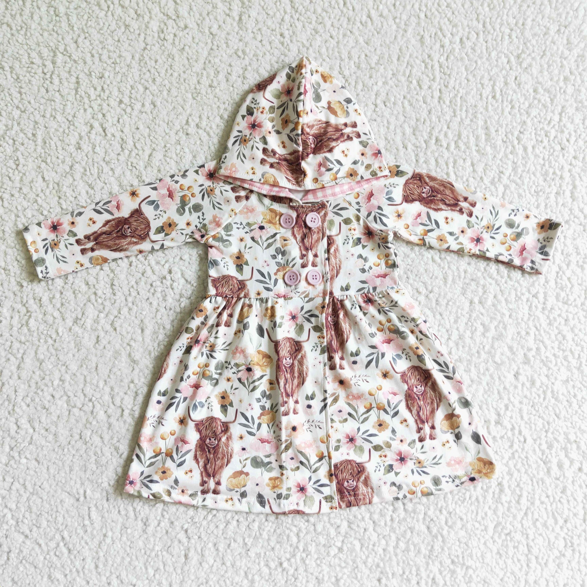 GLD0082 girl hoodie brown cow flower long sleeve girl dress clothes 0815 RTS