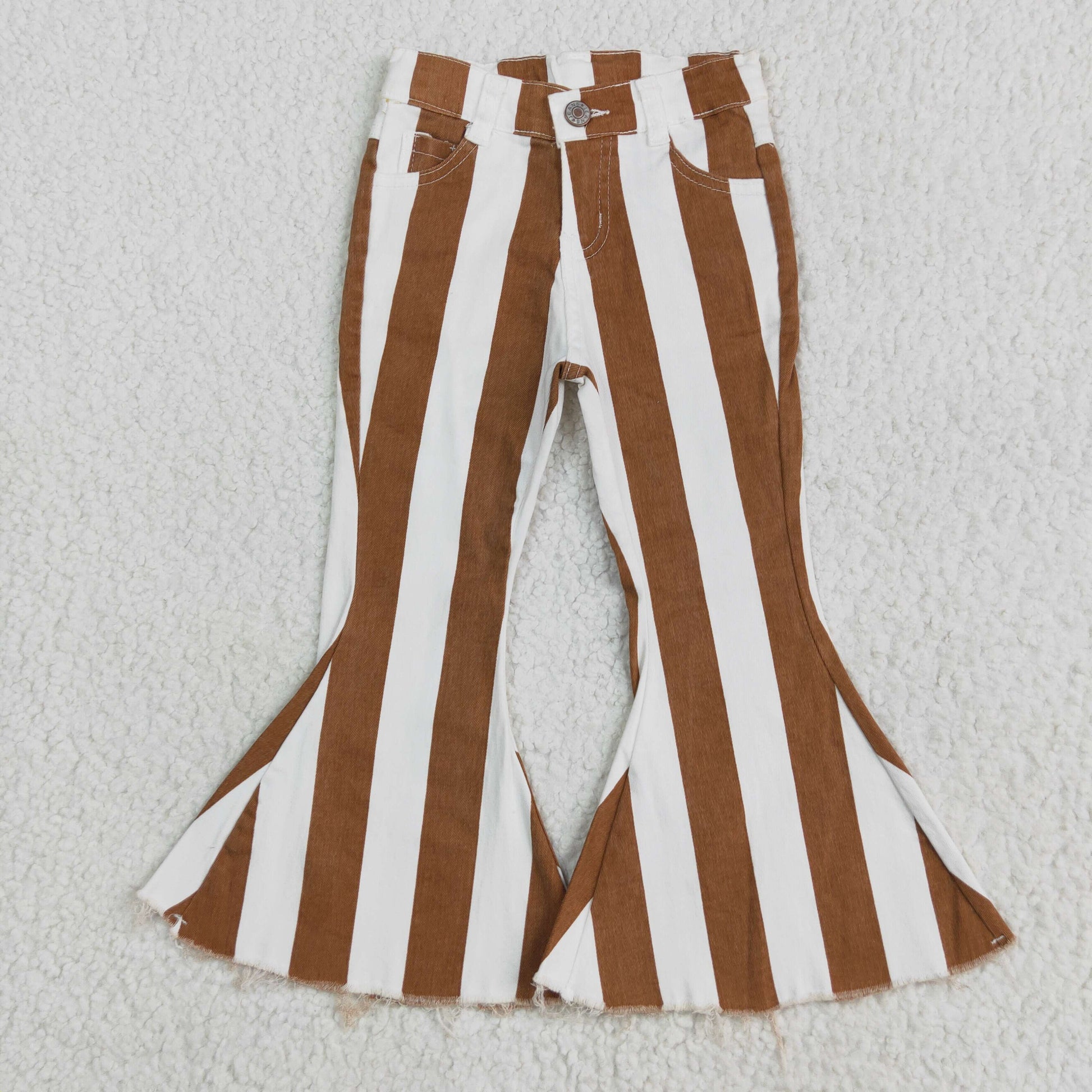 E5-24 white and brown stripe bell bottom girl jeans denim pants 202505 RTS