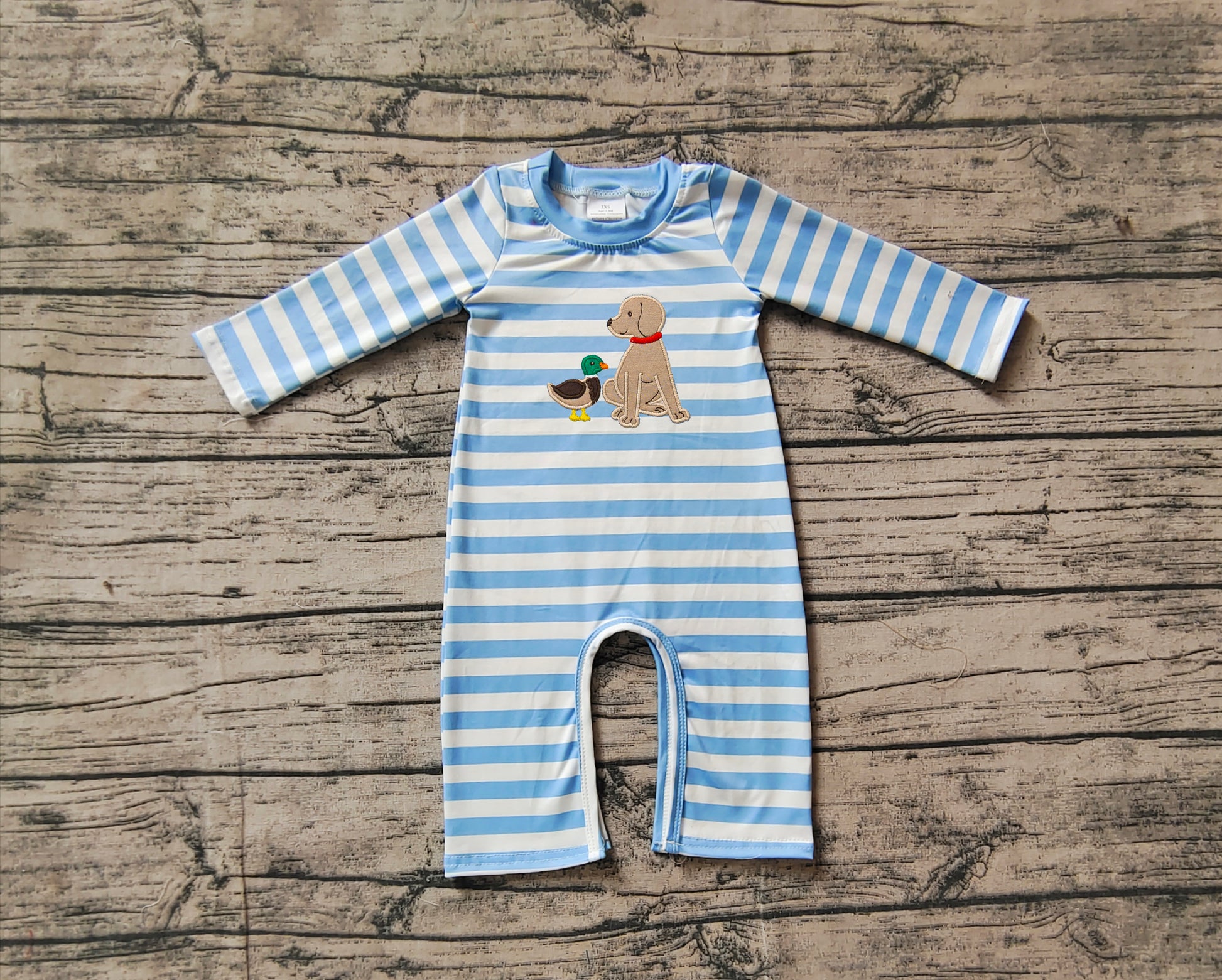 LR1644 embroidery duck dog sibling boy romper 202410 RTS