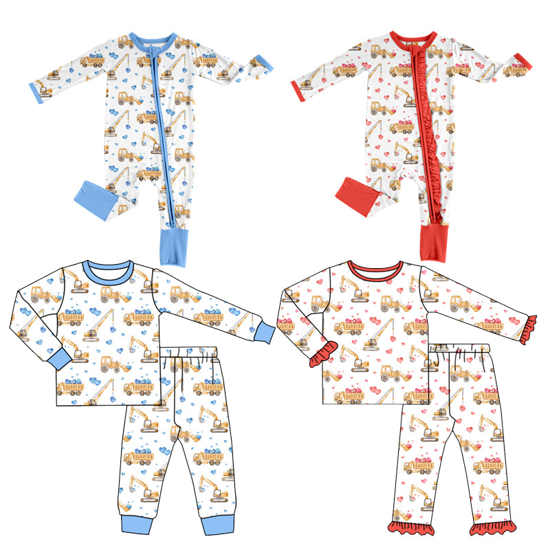 LR2116 Saint Valentine's Day western tractor love boy girl romper 202411 RTS sibling