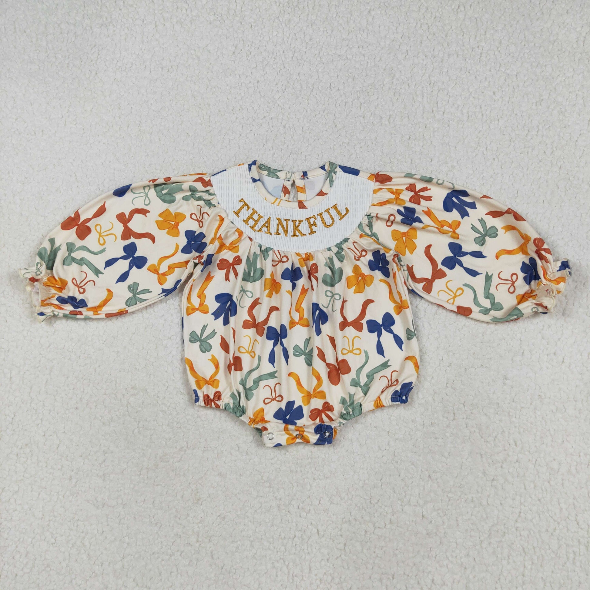 LR2257 smocked bow Thankful girl romper 202507 RTS