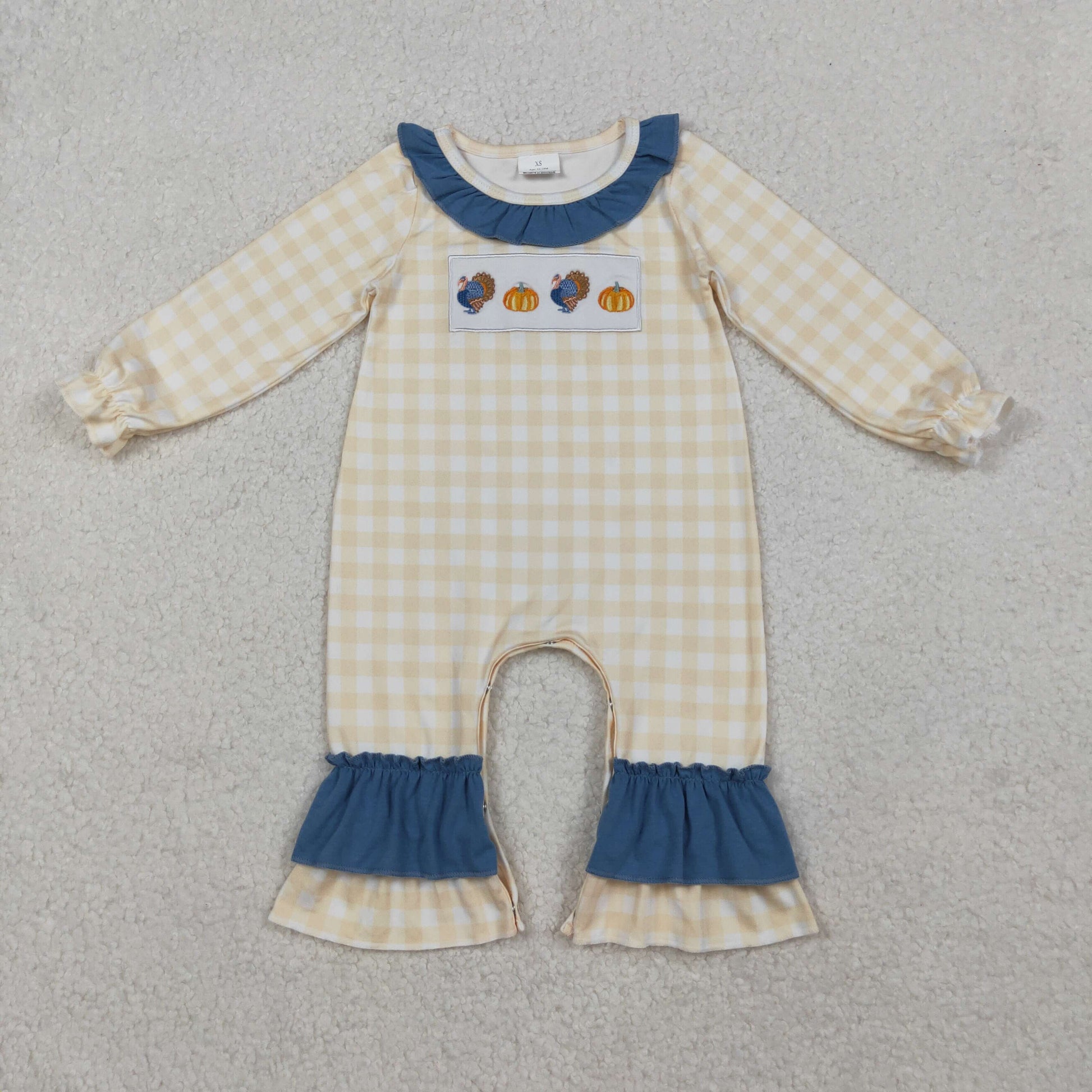 LR2438 embroidery TURKEY PIMPKIN girl romper 202510 RTS
