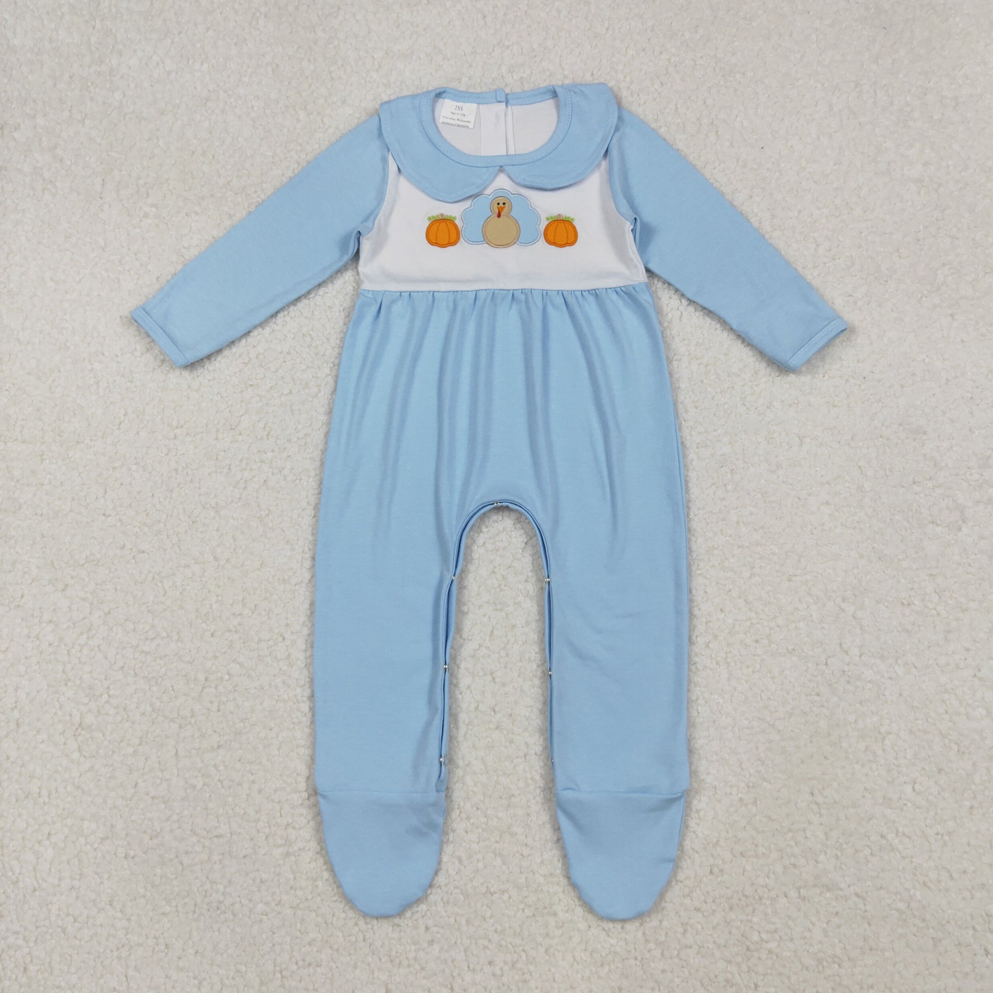 LR2562 embroidery PUMPKIN blue Halloween boy summer romper 202509 RTS