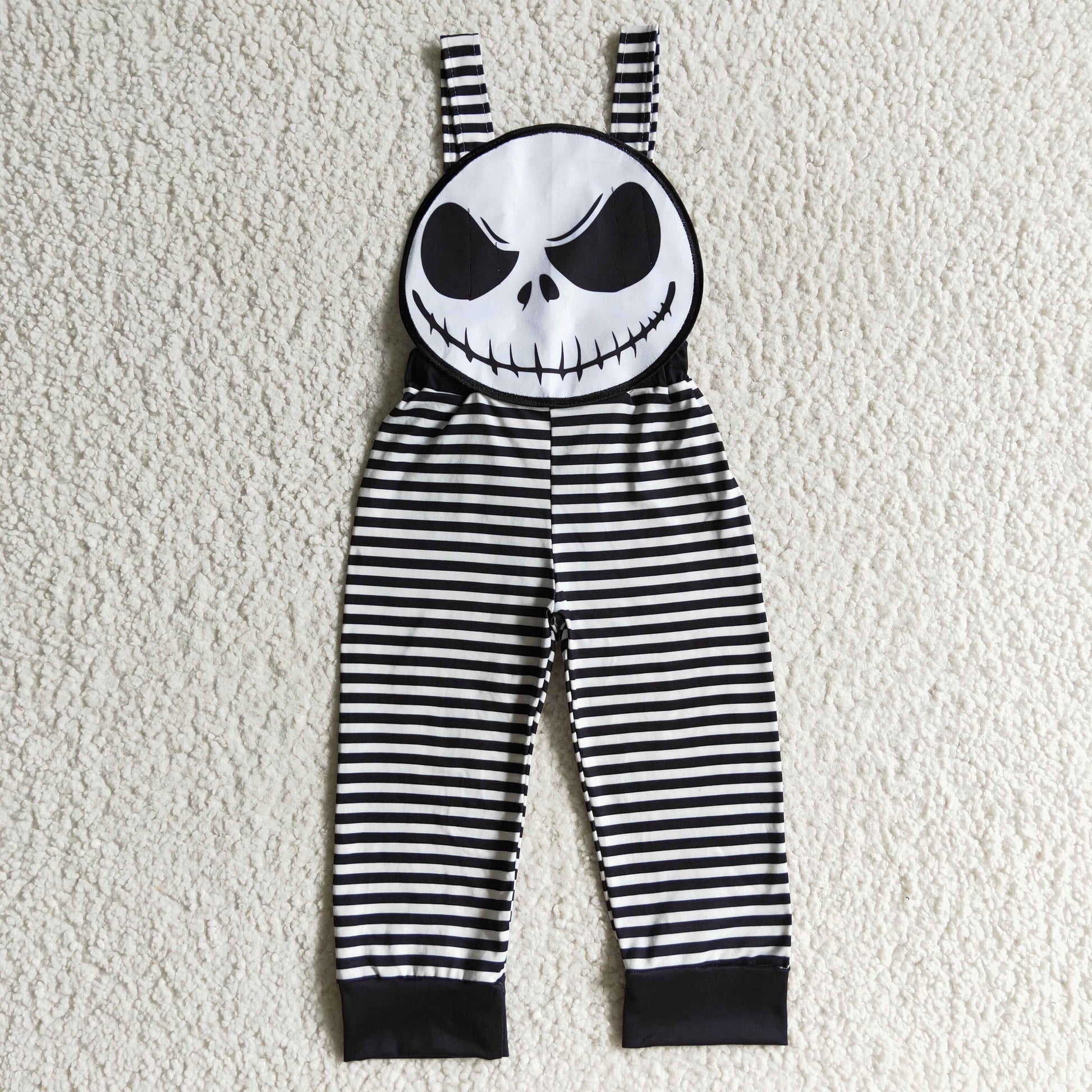 SR0082 Halloween black cartoon white head skull pants overall jumpsuit boy romper 0915