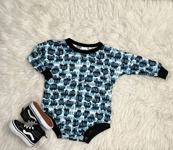 Promotion RTS LR0039 mama's boy cow print green long sleeve romper 0709