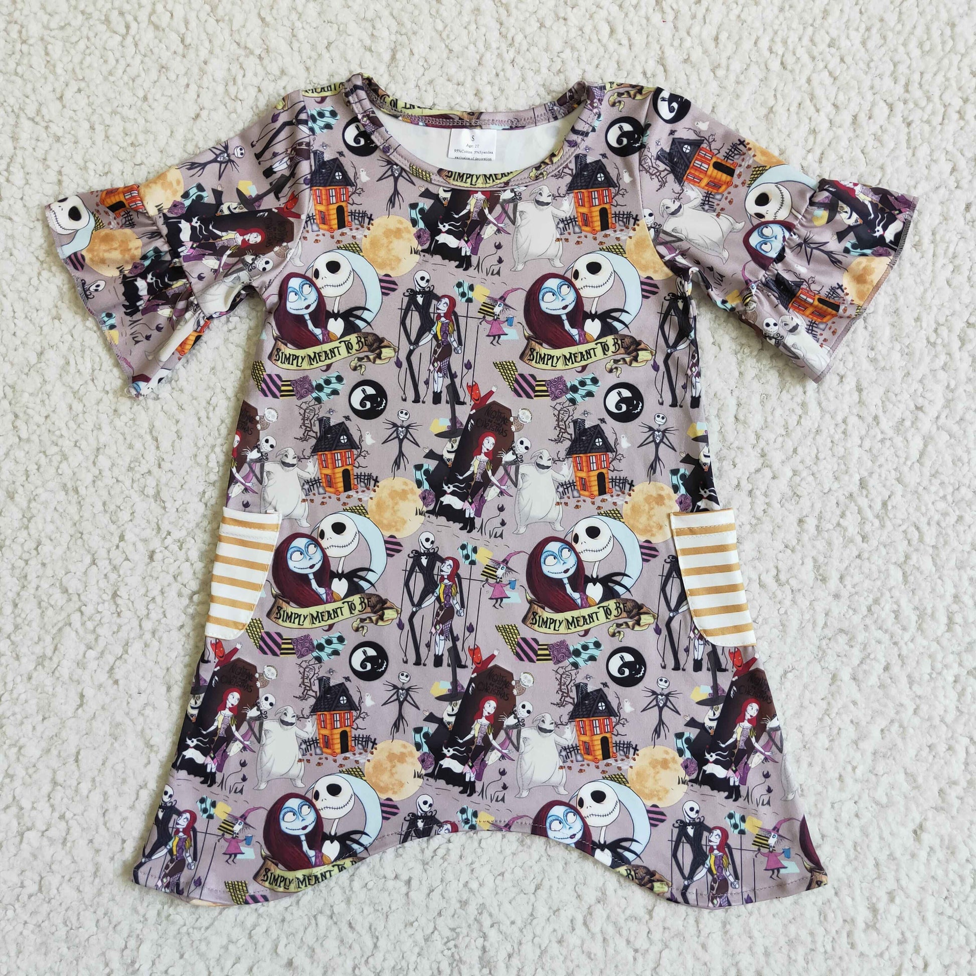 0708 RTS purple cartoon short sleeve halloween girl dress stripe pockets