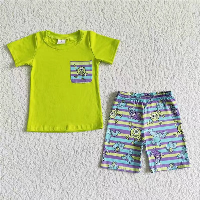 promotion BSSO0044 yellow lime big single eye print short sleeve top stripe shorts boy outfits 1221 RTS