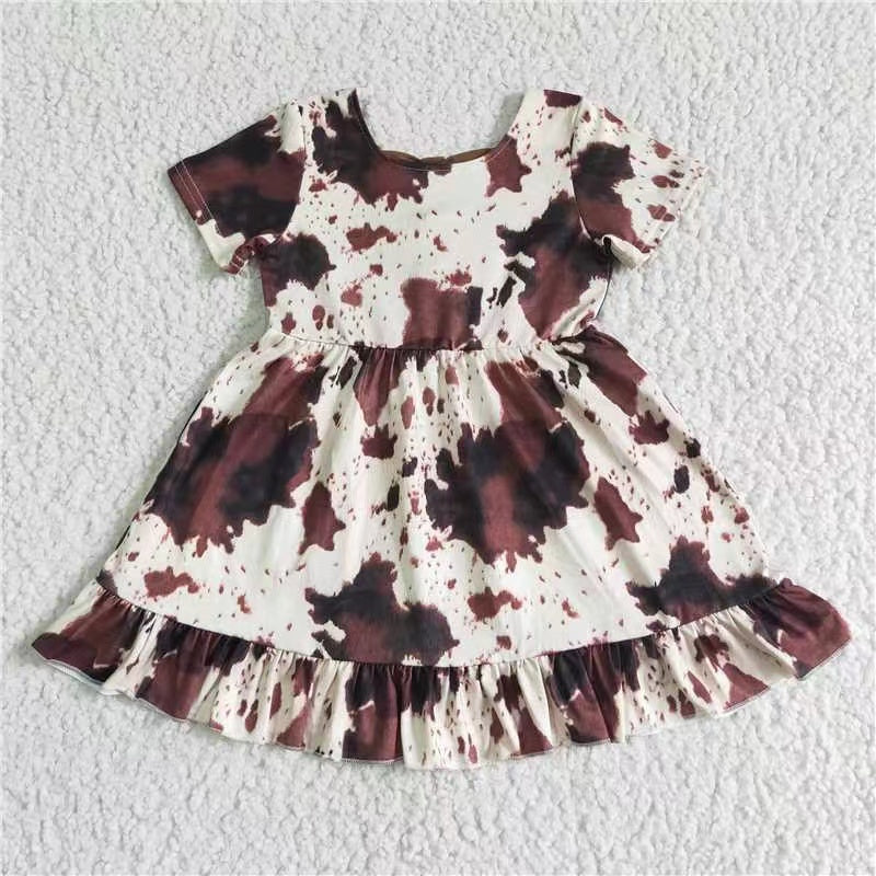 promotion price GSD0032 cow print bowes short sleeve girl dress 20230111 RTS